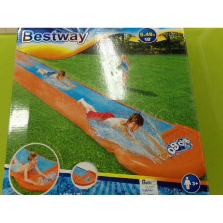 Tus hijos disfrutarán de esta pista deslizante doble hinchable y harán un poco de ejercicio en el exterior. Se divertirán compitiendo para llegar a la meta y refrescarse mientras con los aspersores. Hecho de material resistente para horas de diversión. Este tobogán cuenta con las...